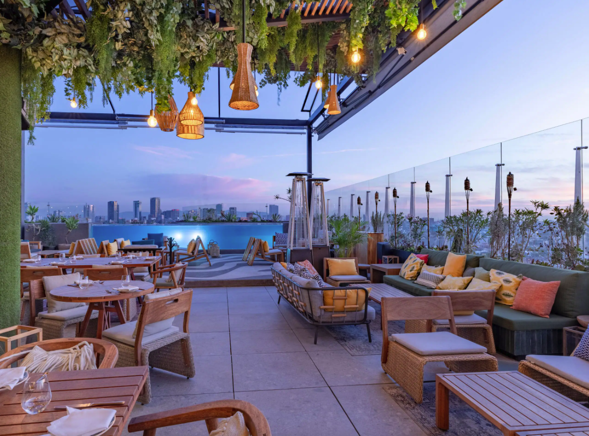 Condesa, ofrece vistas panorámicas de la ciudad. Su Derba Matcha Café es perfecto para quienes buscan bebidas energizantes. Además, el Wooftop Beer Garden & Canine Club es ideal para relajarte mientras tu perro socializa en un espacio único.