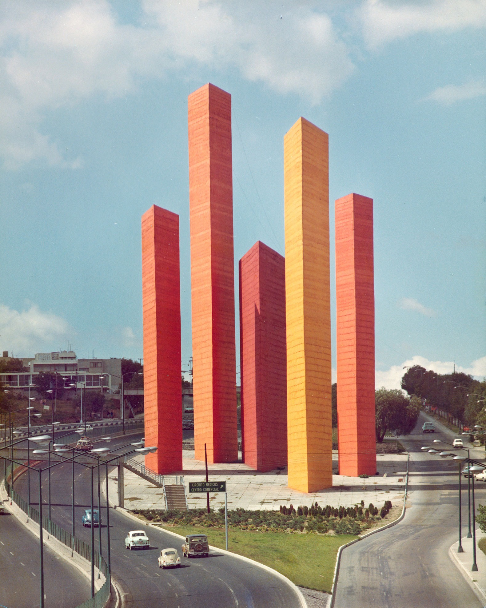 Las Torres de Satélite. Aunque diseñadas junto al escultor Mathias Goeritz, es imposible no ver en ellas la mano de Barragán, su gusto por lo monumental y lo simbólico.