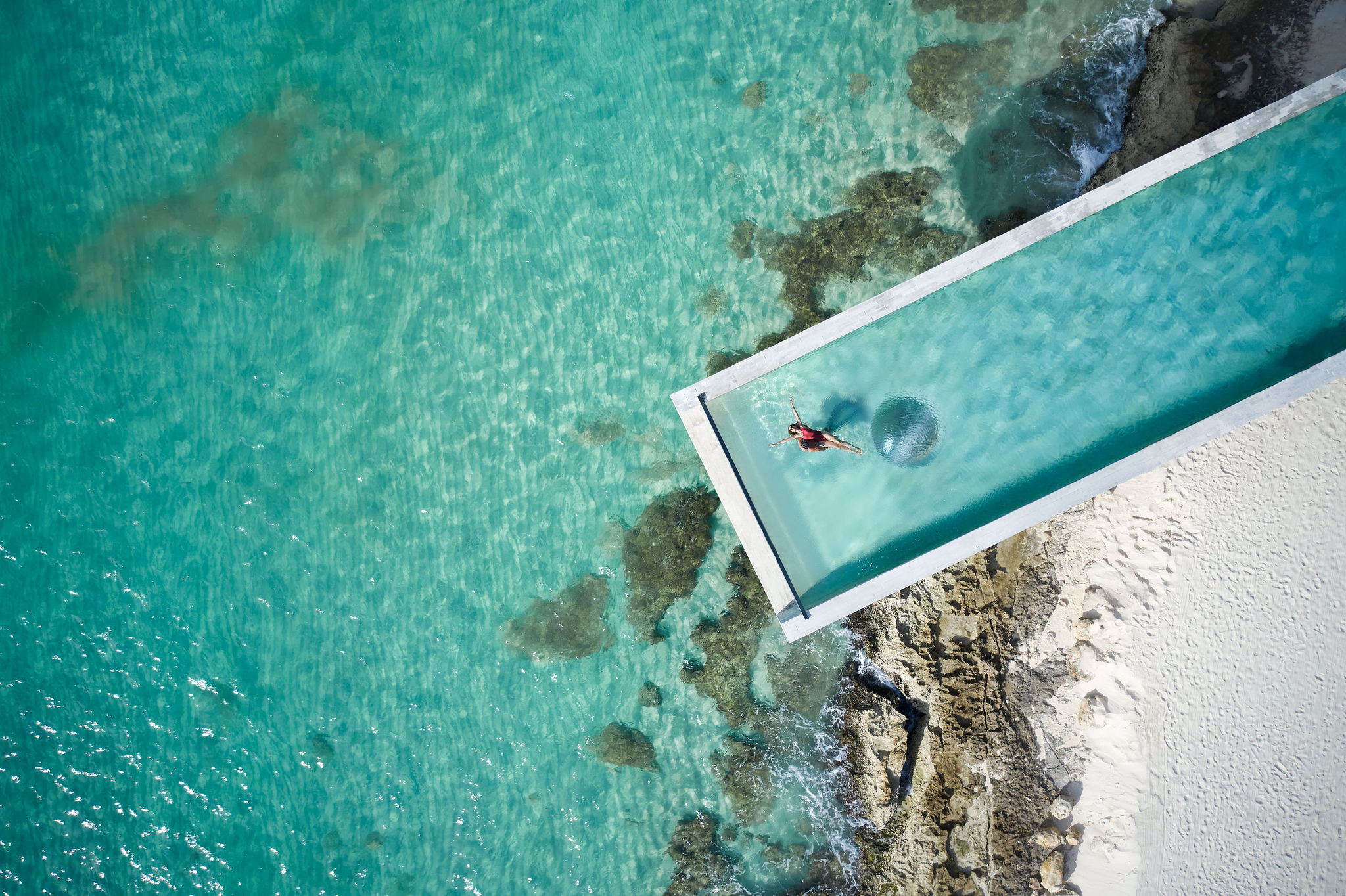 Con 63 suites únicas, cada una con piscina privada y hábitats para medusas Aurelia, el hotel combina lujo de alta gama con una experiencia personalizada. Los uniformes creados por la diseñadora mexicana Carla Fernández, inspirados en las técnicas textiles indígenas, refuerzan ese vínculo entre el diseño contemporáneo y la tradición artesanal. La arquitectura incorpora asimismo paneles solares, sistemas de ósmosis para reutilización de agua, vidrios inteligentes y vegetación en azoteas, demostrando que el lujo consciente no está reñido con la arquitectura de impacto.