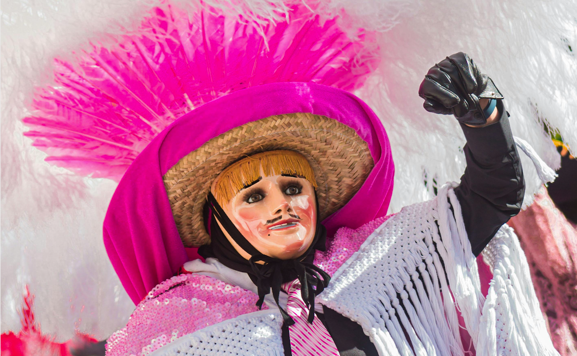 4. Carnavales en Morelos . Finalmente, cercano a Ciudad de México, el Pueblo Mágico de Tepoztlán, en el estado de Morelos, te conquistará con una singular festividad (del 15 al 17 de febrero) en donde el “Chinelo”, un curioso personaje que luce un colorido disfraz y una máscara que parodia los rostros de la gente española de la época de la Colonia, seguro que te hará bailar al ritmo de música de viento, invitándote a dar con él su tradicional “brinco o salto”, reconocido como símbolo cultural del Centro de México.