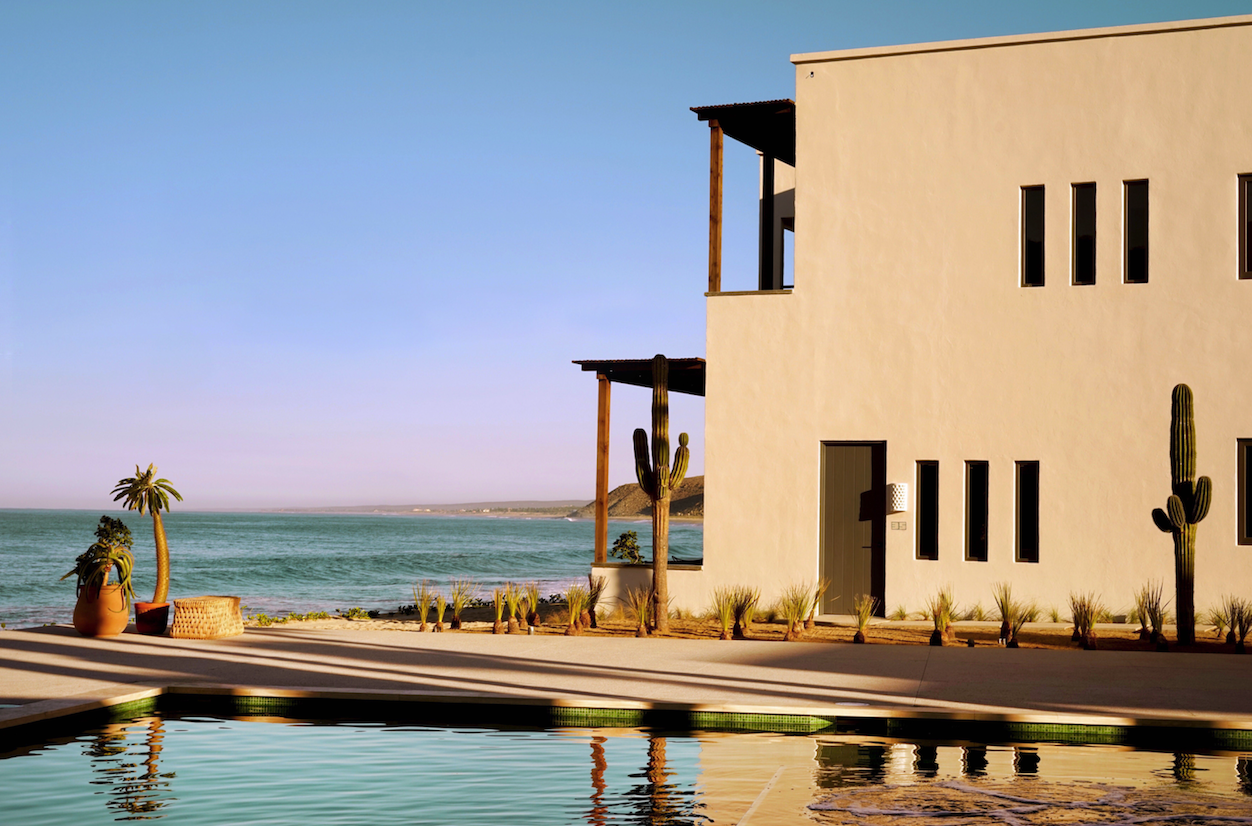 Visitamos Hotel San Cristóbal en noviembre, cuando el clima en Baja California Sur permite estar afuera gran parte del día. El trayecto desde el aeropuerto de Los Cabos toma poco más de una hora; el último tramo, por un camino de tierra, anticipa el carácter del lugar: aislado, contenido y directamente vinculado al paisaje. Frente al Pacífico, entre Punta Lobos y la Sierra de la Laguna, el proyecto se integra al entorno sin competir con él.