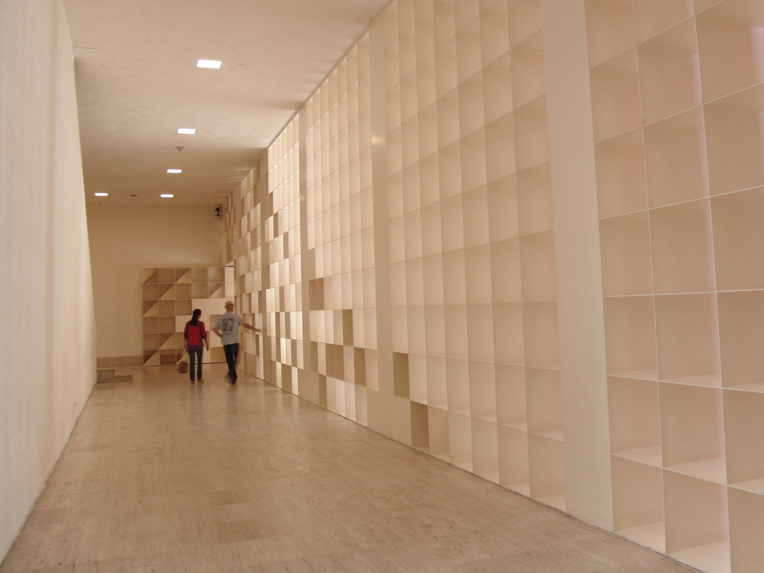 Legorreta, fiel a su estilo, concibió un edificio monumental en apariencia y a la vez íntimo en sus recorridos. Sus muros macizos de tonalidad arenisca evocan solidez y permanencia, mientras los patios interiores, fuentes y juegos de luz natural recuerdan la arquitectura tradicional mexicana reinterpretada bajo un lenguaje contemporáneo. El espacio central, coronado por la célebre escultura de Juan Soriano, “La Paloma”, funciona como umbral simbólico: el arte como ave que invita a entrar y trascender.