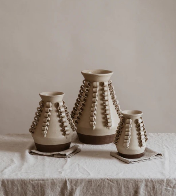 Parte de la colección LOLA, este jarrón diseñado por Perla Valtierra rinde homenaje a la tradición alfarera de México. Hecho a mano con barro del Bajío y acabado en óxido esmaltado, está disponible en una variedad de colores que celebran lo artesanal.