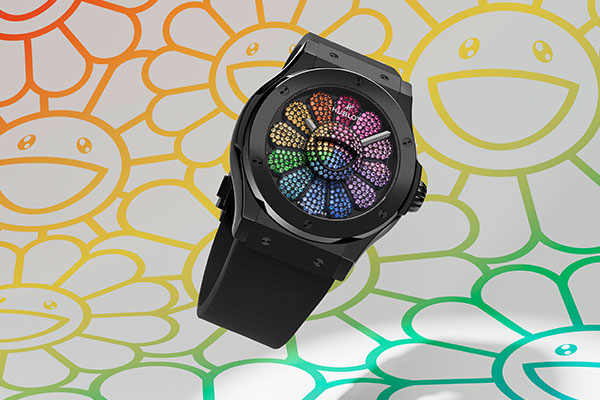 Una colaboración entre Hublot y el artista japonés Takashi Murakami. Esta pieza exclusiva, cuenta con una esfera con la icónica flor del pintor, símbolo de optimismo y color.