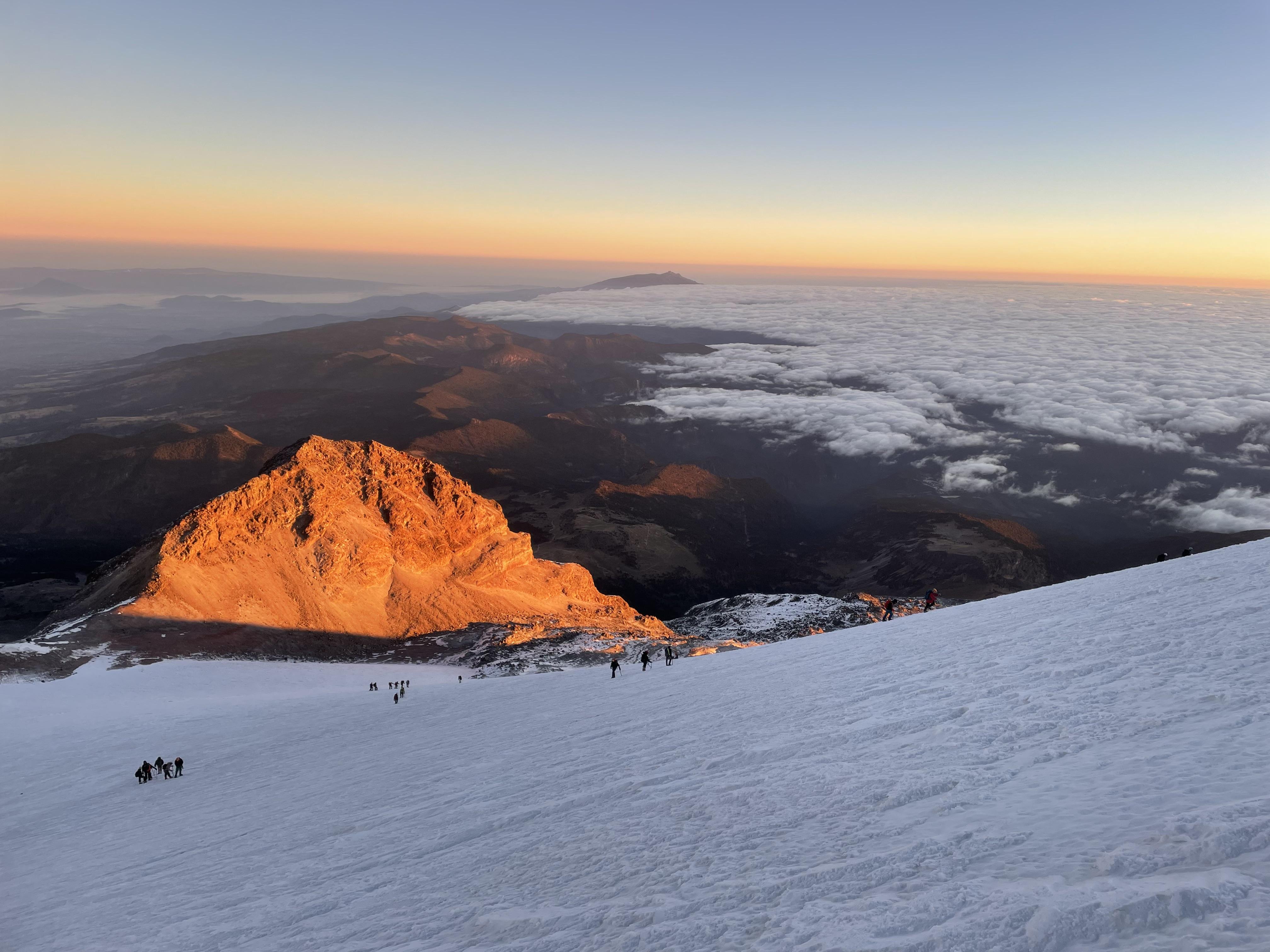 Si eres principiante, este último trayecto, desde el refugio hasta la parte más profusa del glaciar, puede llevar entre 6 y 8 horas, por lo que los expertos recomiendan iniciar esta emocionante y retadora misión hacia la 1:00 am, para que, cuando el sol haga su aparición, tú ya estés muy cerca de la cima contemplando un paisaje sencillamente espectacular: ¡Todo México a tus pies! ¡El cansancio y el frío no han podido contra ti y ahora eres uno con la naturaleza, a 5,636 msnm!