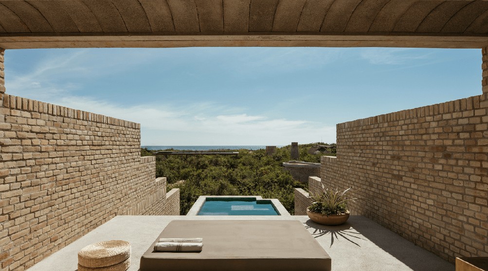 Más allá de su deliciosa cocina, los espacios comunes invitan al huésped a una conexión elemental. A relajarse en su spa hexagonal, sumergirse en las aguas meditativas del baño de inmersión, o visitar el hammam escultórico.